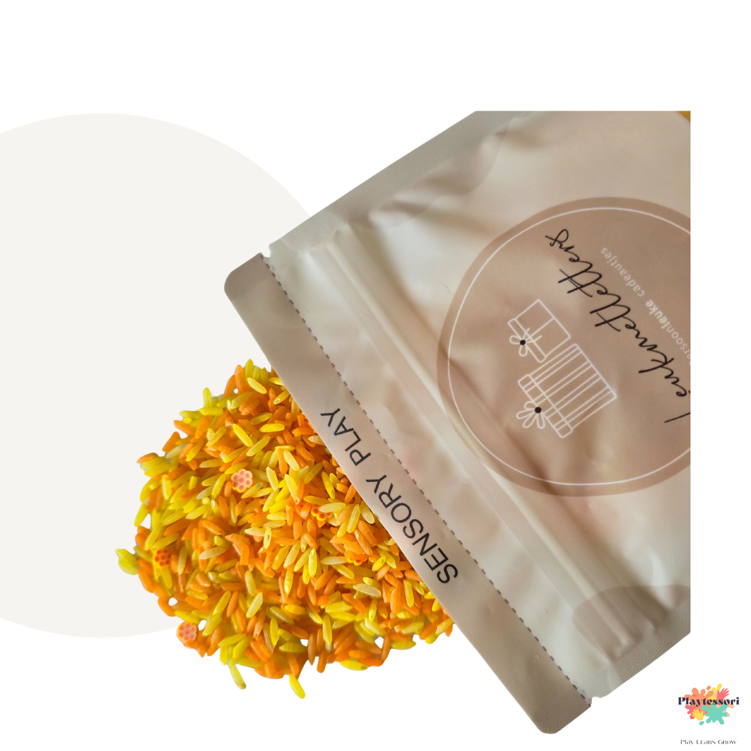 Onze Honing mix speelrijst zorgt voor een zonnige en vrolijke speelervaring!De gele en oranje tinten, samen met de kleine bijtjes, bloemen en honingraatjes, maken het spel extra leuk en herkenbaar. Kinderen kunnen scheppen, gieten en voelen terwijl ze spelenderwijs hun fantasie gebruiken.
